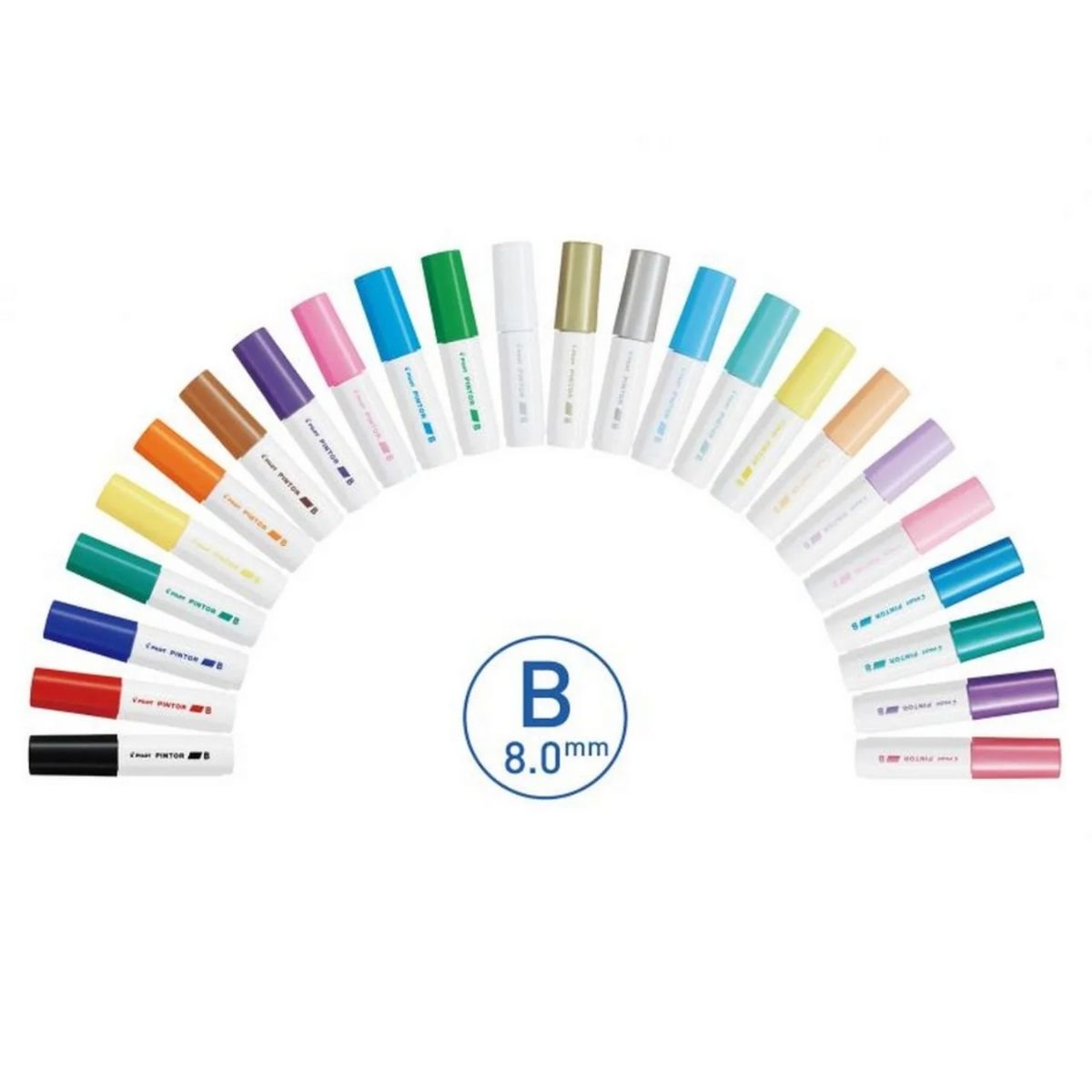 Pilot Pintor B je profesionální akrylový popisovač se širokým hrotem 8,0 mm, navržený pro kreativní tvoření a dekorování. Obsahuje pigmentový inkoust na vodní bázi, který má vysokou krycí schopnost a syté barvy – skvěle drží i na tmavých a porézních površích.
